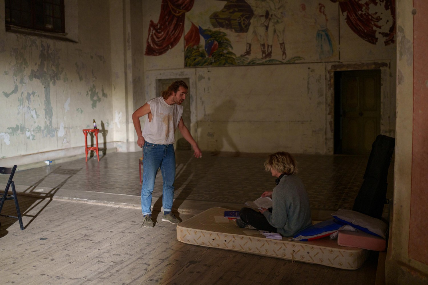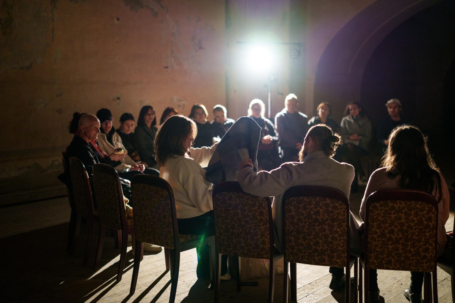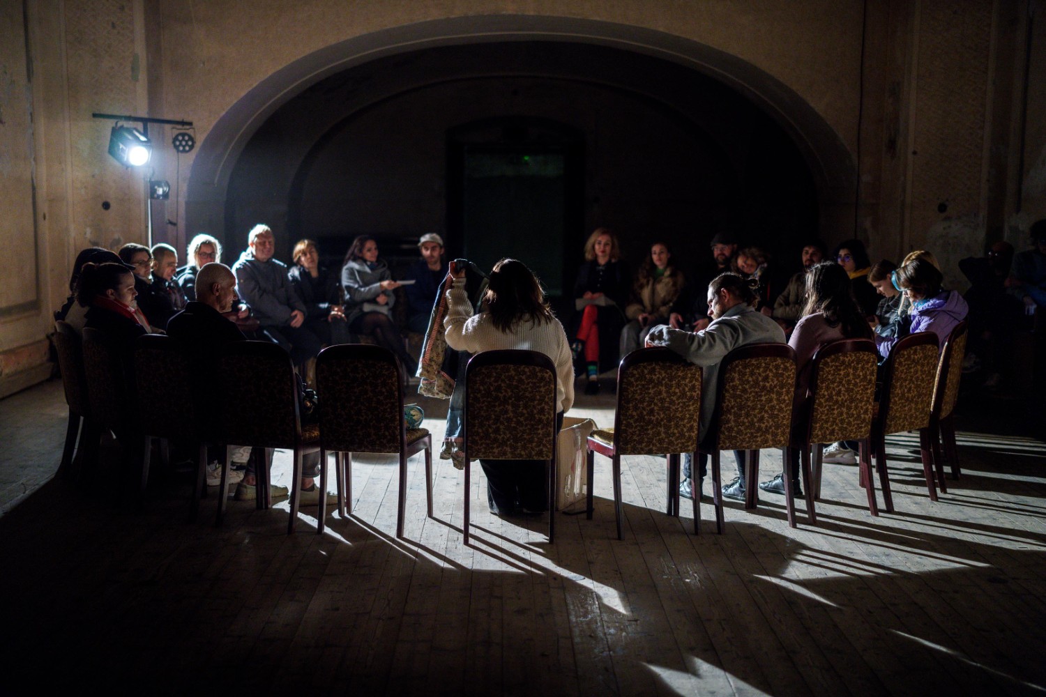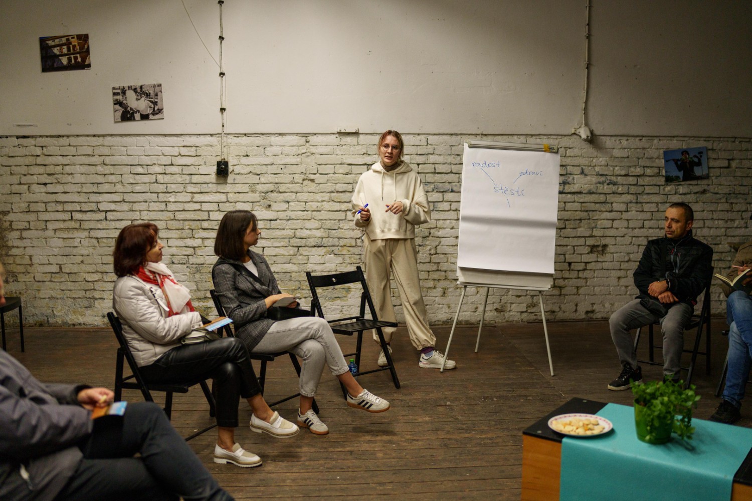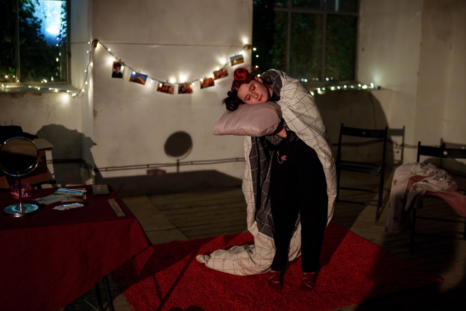 Pocit neklidu, tenze, chvějivé nervozity, které se nelze zbavit ve fyzických ani psychických projevech. Jak se ve čtvrtém roce války ozývá v těch, kteří se usadili v Brně a okolí, směs (ne)vzdálené minulosti a současnosti hledající naději? Jakou denní realitu žijí lidé v cizí zemi? Co s sebou přinesli? Co napsali? Co opadající zájem okolí? Devět zkušeností v jednom celku: obrazy autorské výpovědi, procházka domem, koláž témat. Zárodky příběhů, monology, dokument, verše. Performativní přednáška i herecká skica. Hledání tvůrčího očištění.