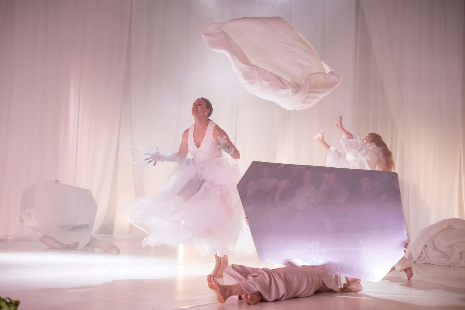 Taneční představení se silnou vizuální identitou pro osm tanečnic za doprovodu živého zpěvu a hudby. Za ženstvím a hodnotami, které ženská podstata vnáší do světa, se představení vrací do míst našeho dětství. Odhaluje a ohledává procesy, kterými se stáváme samy sebou. S lehkostí si na sebe oblékáme různé role, jakoby každá z nich byla jen další hrou. Role, které známe z pohádek i z reálného života. Tvoříme si nové fantazie, ve kterých přetváříme naše identity a způsoby, jakými si dokážeme představit vlastní šťastné konce.
