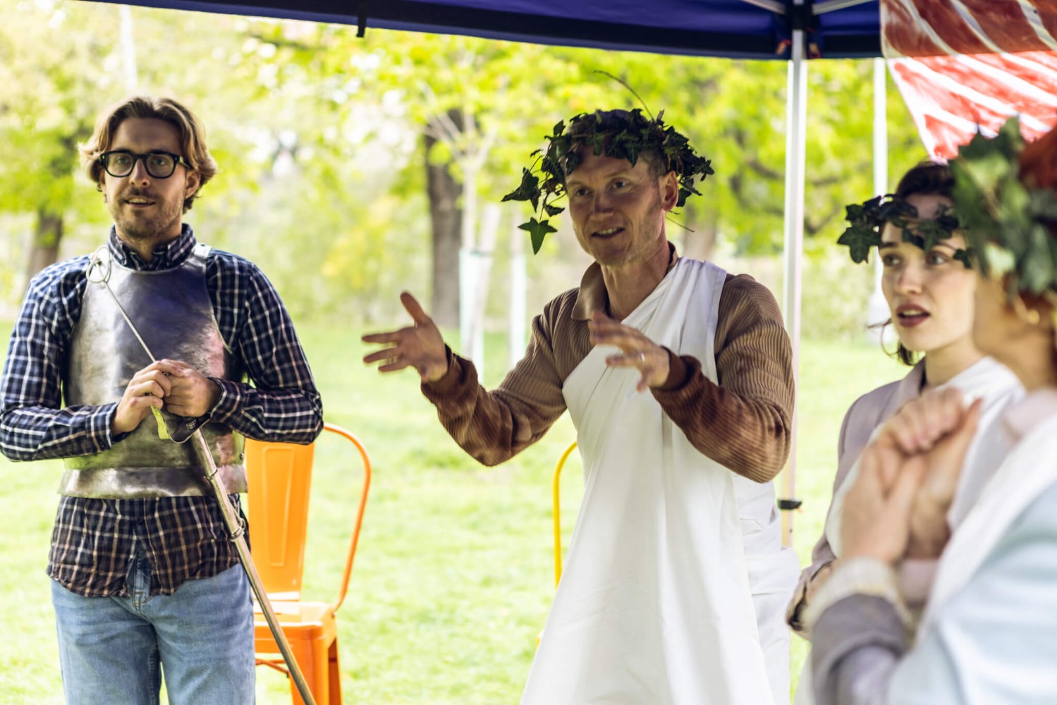 Imerzivní inscenace autorstva a režisérstva nejmladší generace, která se vzdala alarmistických výkřiků ve prospěch hledání způsobů přežití.