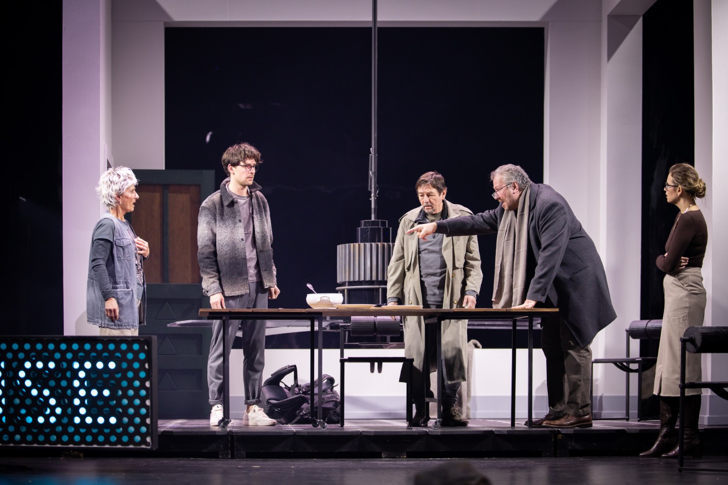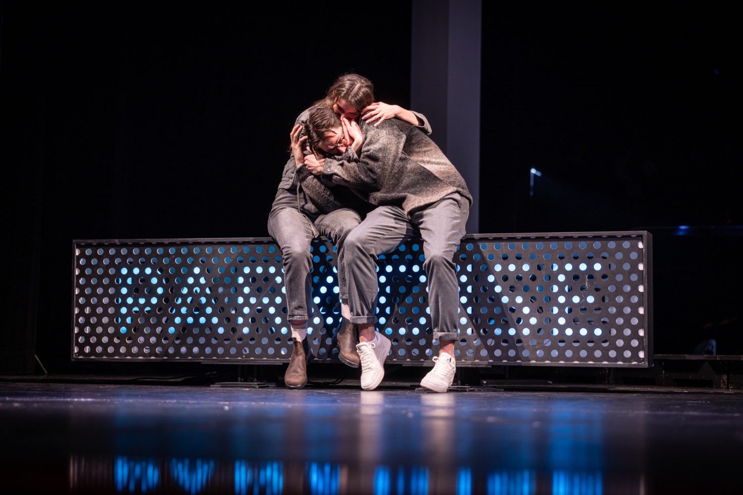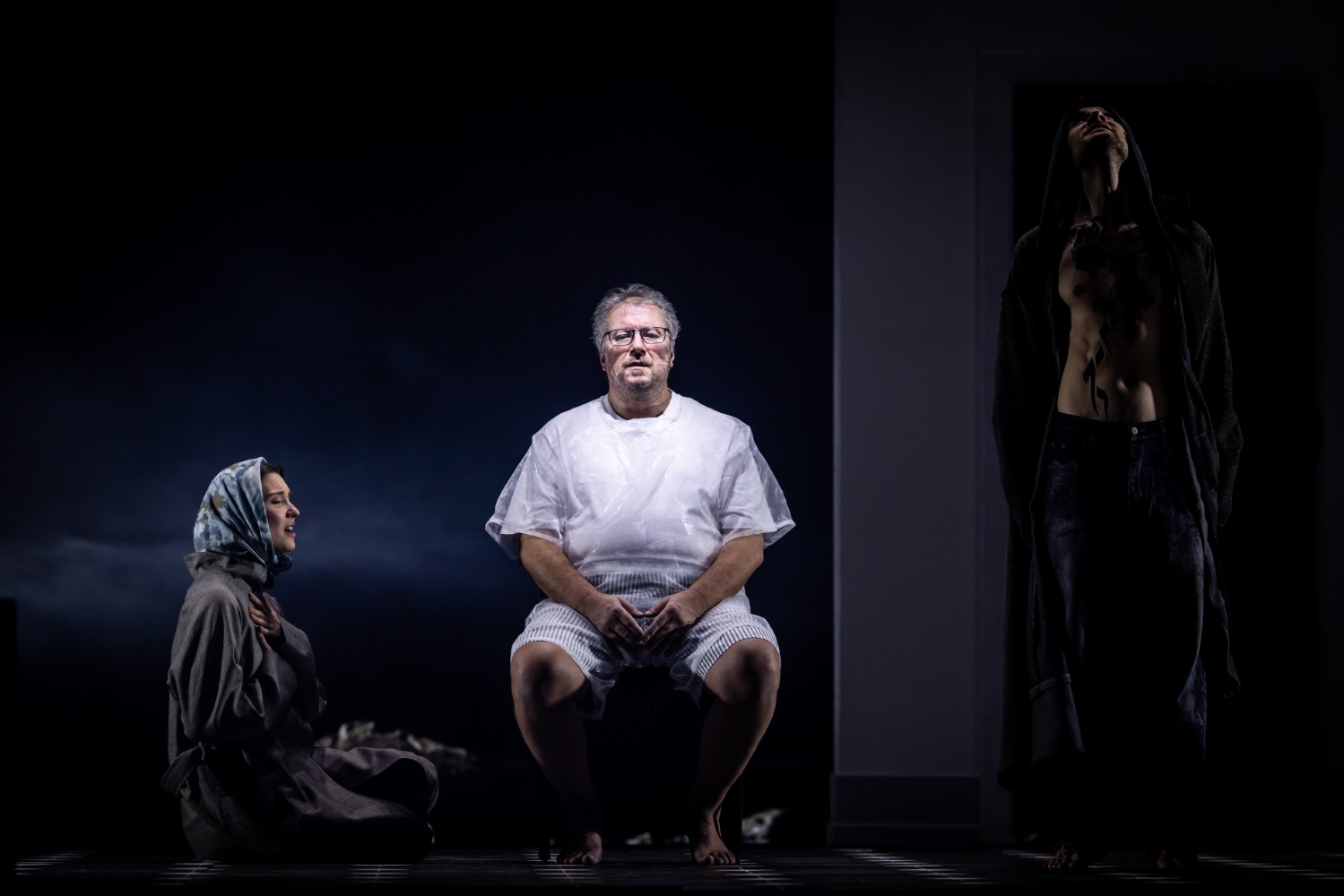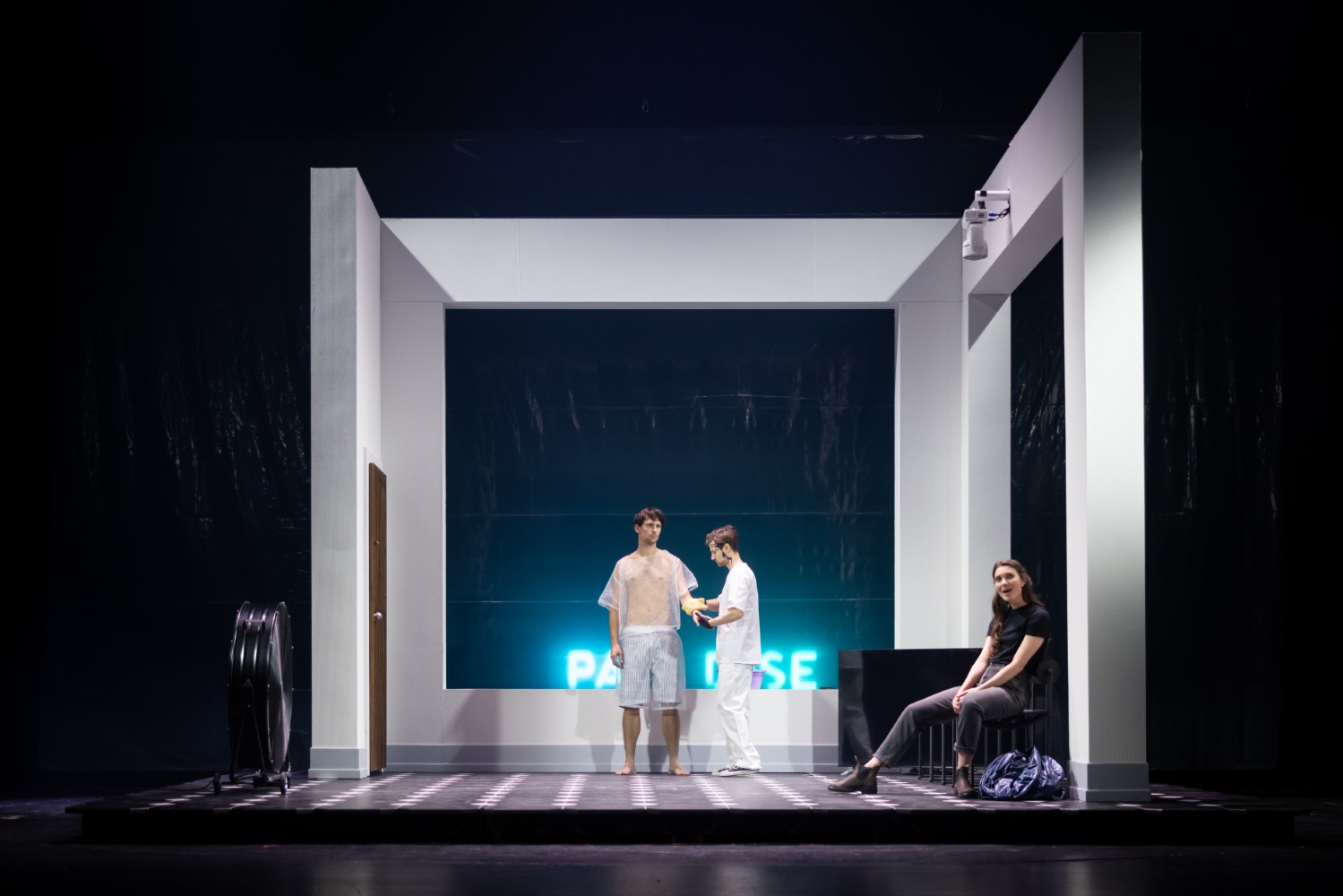V inscenaci se používá stroboskop a obsahuje projekce, které zobrazují násilí.
