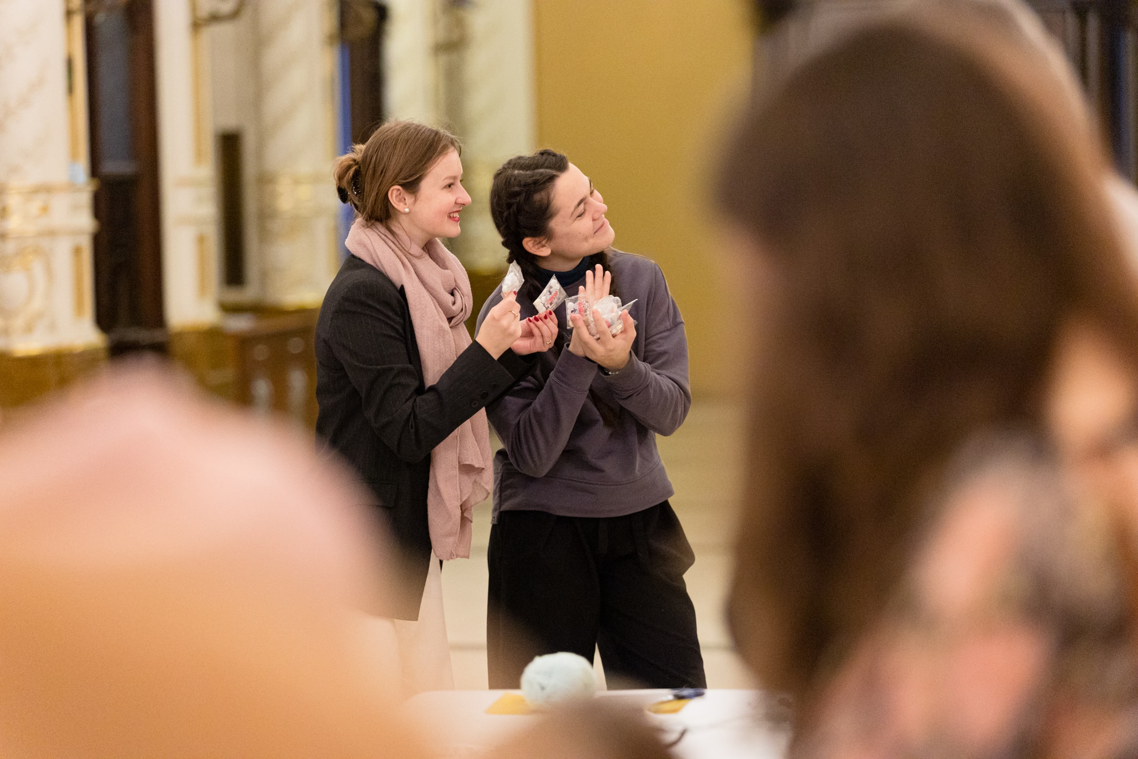 Sami jsme si prošli workshopem vedeným Radkou Mackovou a Sašou Blahem, který navazuje na inscenaci NdB Sluha dvou pánů a je zaměřený na zkoumání charakteristik postav, kterými se dramatik Carlo Goldoni inspiroval v Commedii dell‘ Arte.