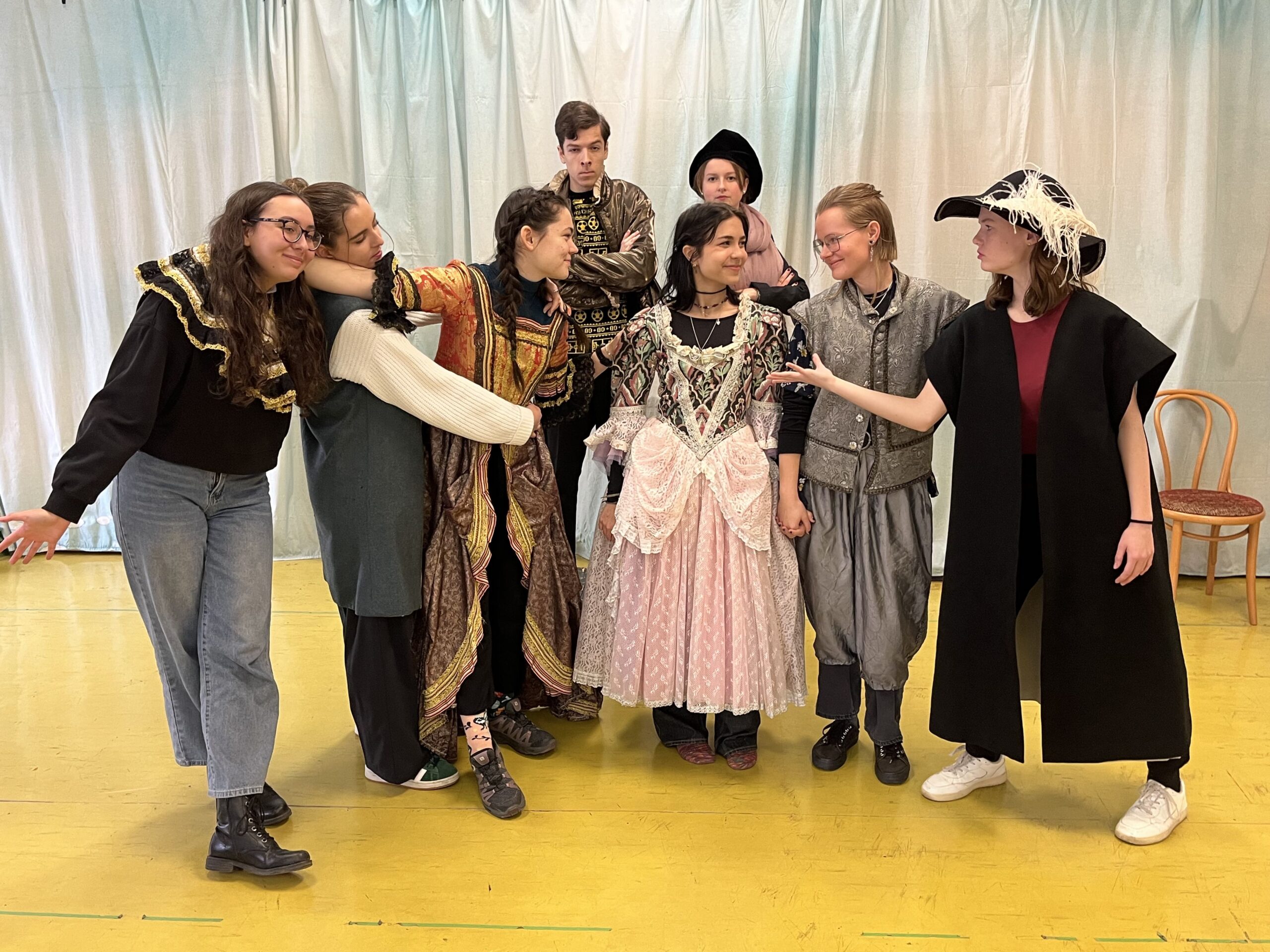 Následně jsme si na vlastní kůži vyzkoušeli, jaké by bylo hrát v představení právě tohoto druhu divadla. Kostýmy, improvizace a hlavně humor nesměly chybět!